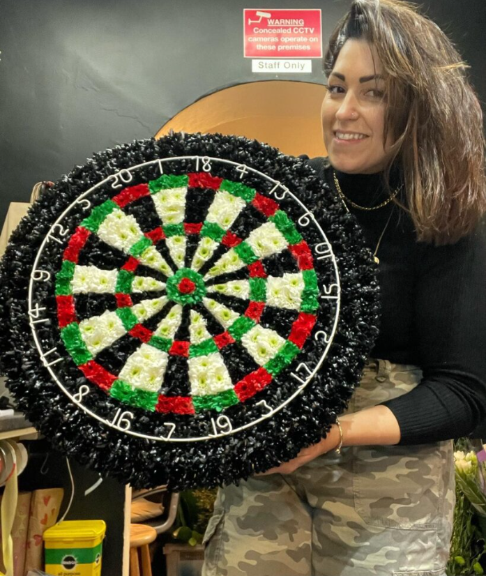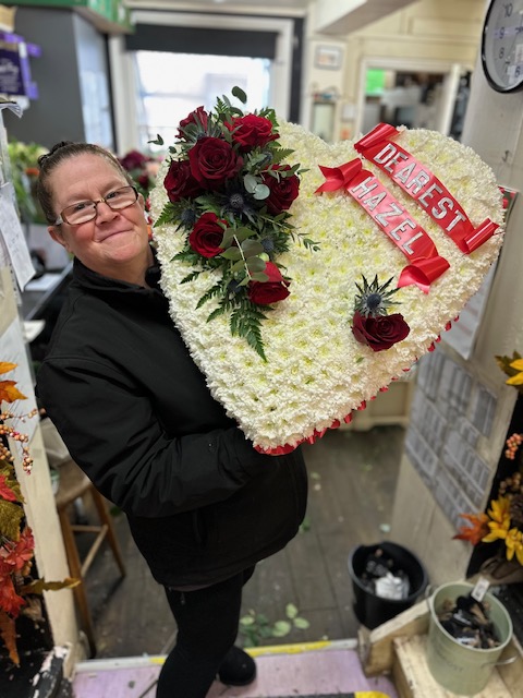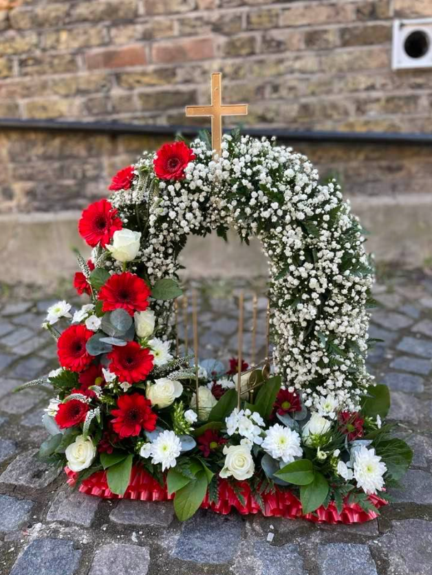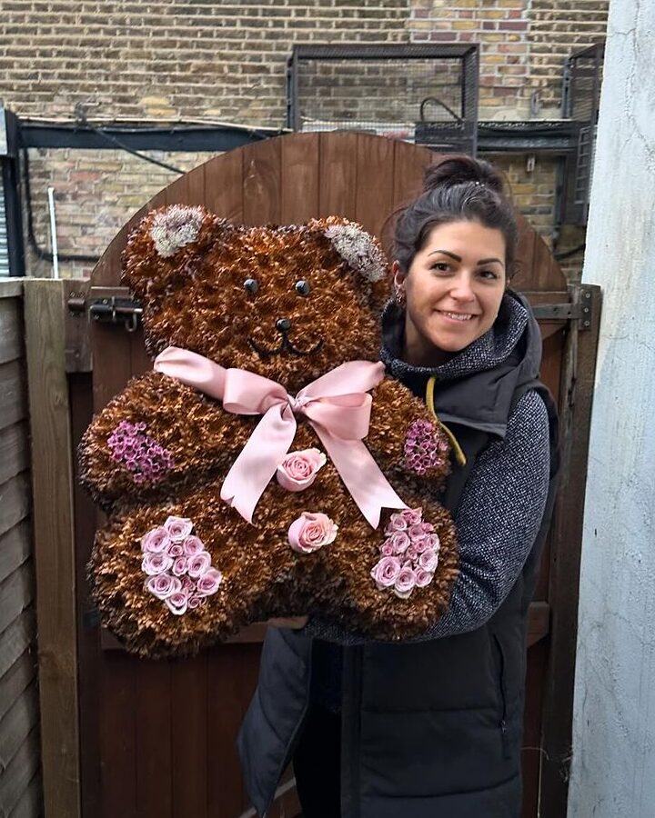 Bespoke funeral arrangements offer a unique way to celebrate the life and passions of your loved one. These custom designs can be tailored to reflect hobbies, interests, or meaningful symbols. For example, you could have arrangements shaped like a football (or colours that represent their favourite team) for a sports enthusiast, a musical instrument for a musician, or even a beloved animal, which is Portia’s favourite to make. These personalised creations typically take 2-3 days to complete.