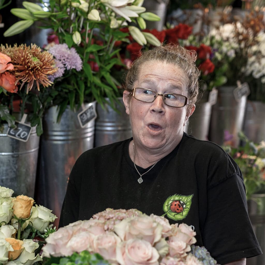Jane treats Sweet P as her own, and that’s a rare find these days. Always offering to start early or finish late when needed to make sure everything runs just perfectly in the shop. She has a great eye for displaying new stock and putting a ‘Jane’ twist on floristry; loves a fancy piece of bear grass!