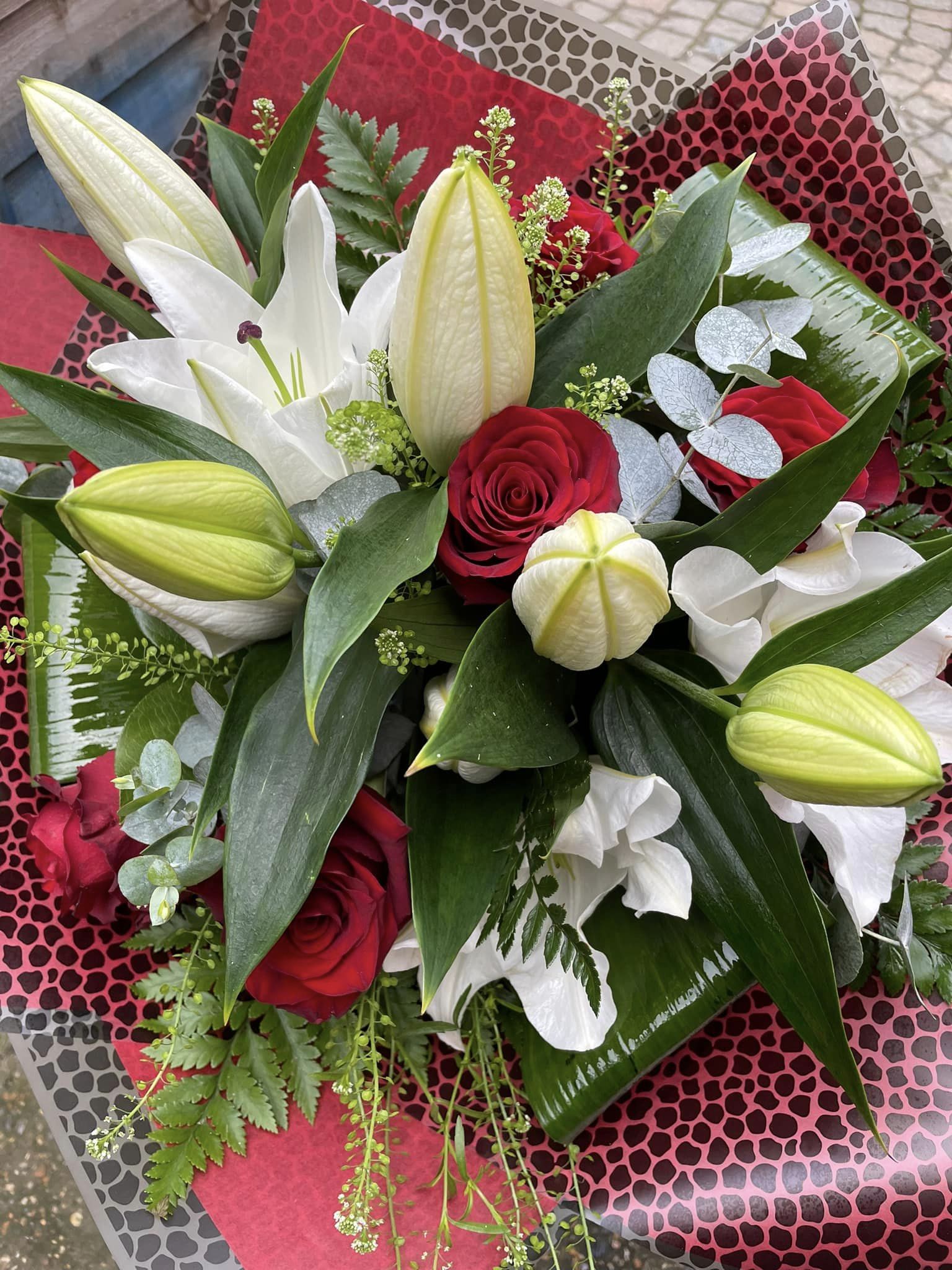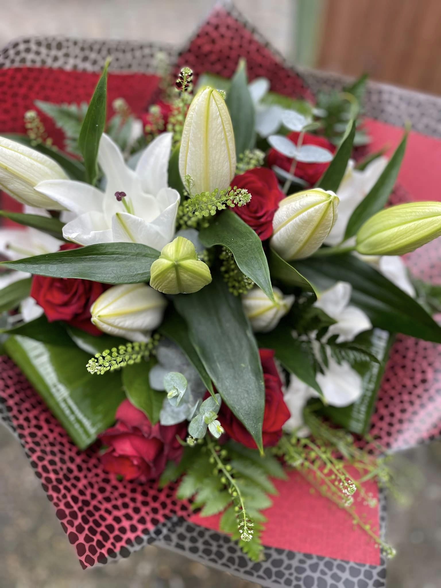 6 Red roses and white lilies, Beatrice has the perfect concoction for a happy other half, you simply can’t go wrong with this one…but you could go bigger with Agnes!
