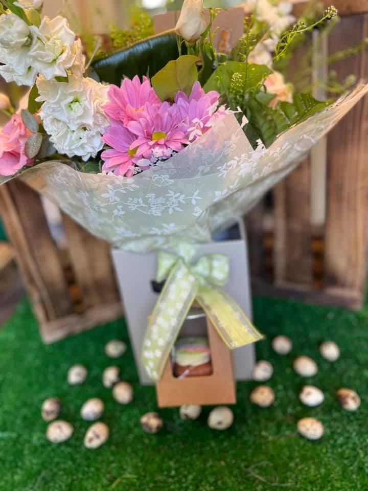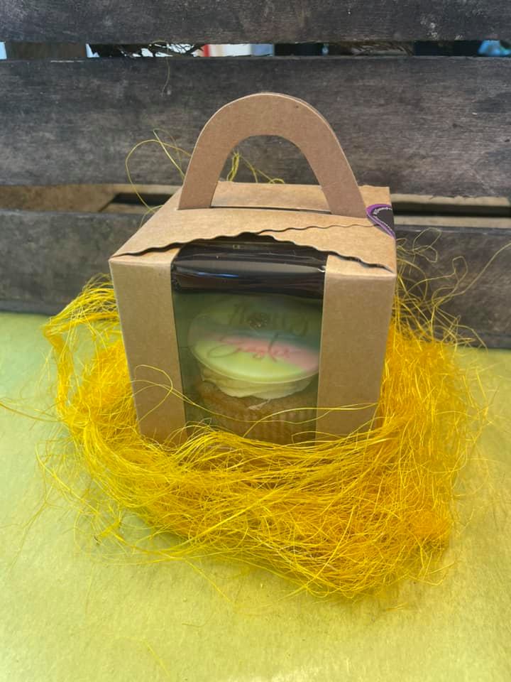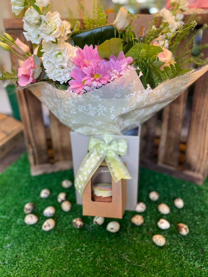 A locally made boxed ‘Hoppy Easter’ cupcake available to add on to a bouquet from 31/03/21 to 06/04/21