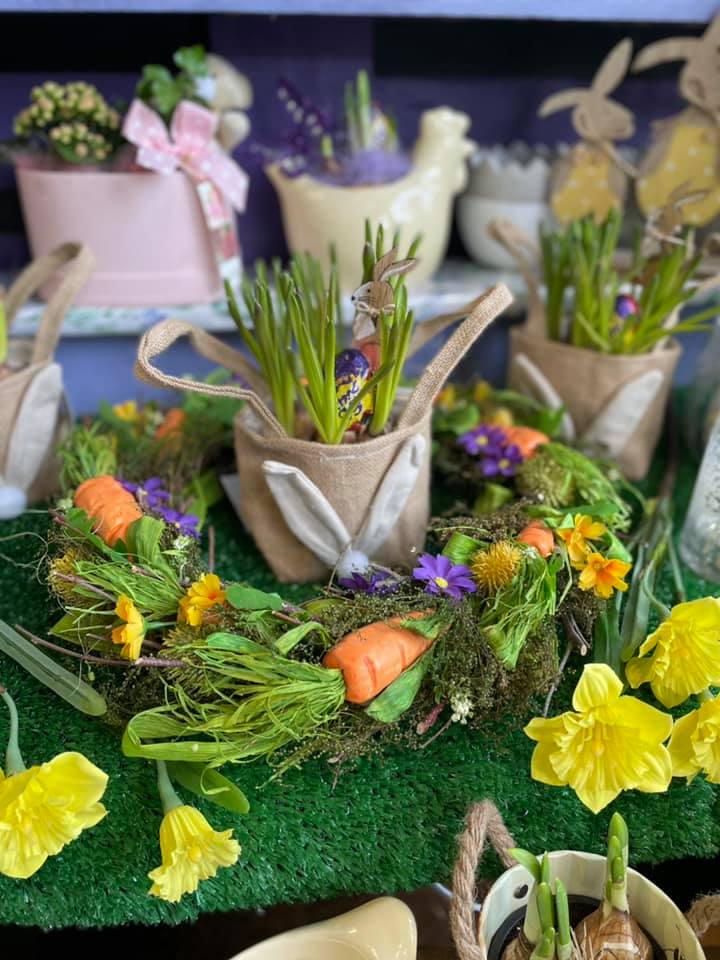 The Easter Bunny’s been! A Muscari plant inside cute hessian bunny bag, with a wooden bunny pick and a Cadbury’s Cream Egg nestled in the middle!